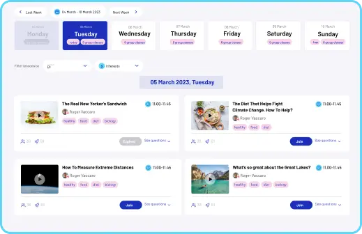 Explore our dynamic calendar and select lessons that align seamlessly with your preferences.